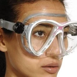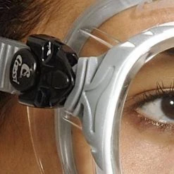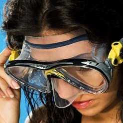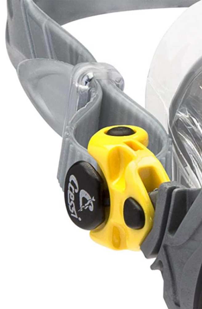 Raked lenses, with Cressi’s inverted tear-drop shape, are placed close to the eyes for an exceptional field of view,