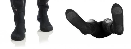 In this way the stocks and orders are managed, the thermal conductivity of the suit is improved, normal fin sizing is maintained and the key hard boot-calf union is avoided, one of most common areas for breaks and water leaks in dry suits. Hood and paraffin zipstick included.